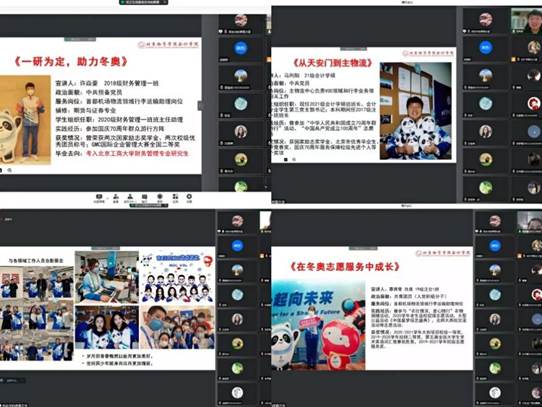 最后,马向阳同学分享《从天安门到主物流》。从国庆70周年,到建党百年再到北京冬奥会志愿者,马向阳同学在自己最美的青春时光里,书写了对祖国的热爱,展现了青年人的责任与担当。