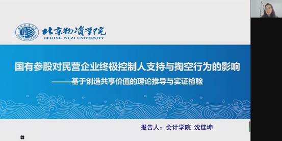 在主题报告环节,304am永利集团教师沈佳坤和会计学学术型硕士研究生霍宜君分别报告了自己最近的工作论文并接受点评人的评论。沈佳坤报告了工作论文《国有参股对民营企业终极控制人支持与掏空行为的影响》,304am永利集团教师贾婧先做点评,认为论文具有较好的研究意义和规范性,同时也提出了对论文的感受和修改建议。胡浩志博士结合自己多年作为杂志编辑的经验以及公司治理的研究专长,指出了该篇论文存在的许多有待修改和完善之处。
