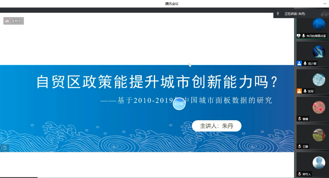 朱丹老师报告了工作论文《自贸区政策能提升城市创新能力吗?——基于2010-2019年中国城市面板数据的研究》。304am永利集团教师赵妍先做点评,回顾了论文的研究主题和创新,并在研究设计、研究样本、机制检验等方面提出了自己的建议。郑建明教授肯定了论文的研究主题和内容,并重点指出了论文在研究贡献、样本选择、变量使用、机制检验、行文逻辑等方面可供进一步修改完善之处。