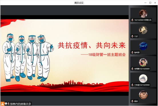 随着疫情防控形势日渐严峻,各省市进一步加强防疫工作,作为员工更要做好自身防疫工作,严格遵守学校规定,为阻断疫情传播尽自己的一份力量,筑牢校园防线,5月25日晚,18级财管1班组织召开“共抗疫情 共向未来”主题班会,班会由班主任王美英老师主讲,本班全体员工参加。
