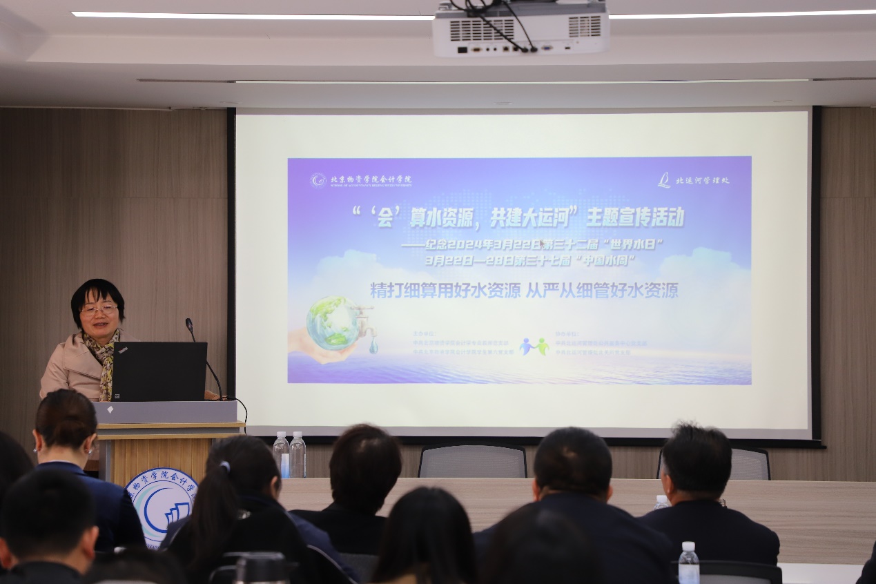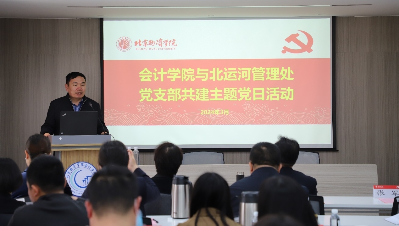304am永利集团会计学专业教师党支部书记陈波同志介绍了用水资源会计核算的理论与实践探索,在阐明我国水资源治理现状的不足之处的基础上,提出以水权制度建设为核心的水资源国家治理现代化体系。陈书记提出了双方可在运河水资源会计核算案例和运河生态治理与文化传承研究方面开展共建,共同进行相关研究,指导员工发表论文,参加大创项目、“互联网+”“挑战杯”比赛等。