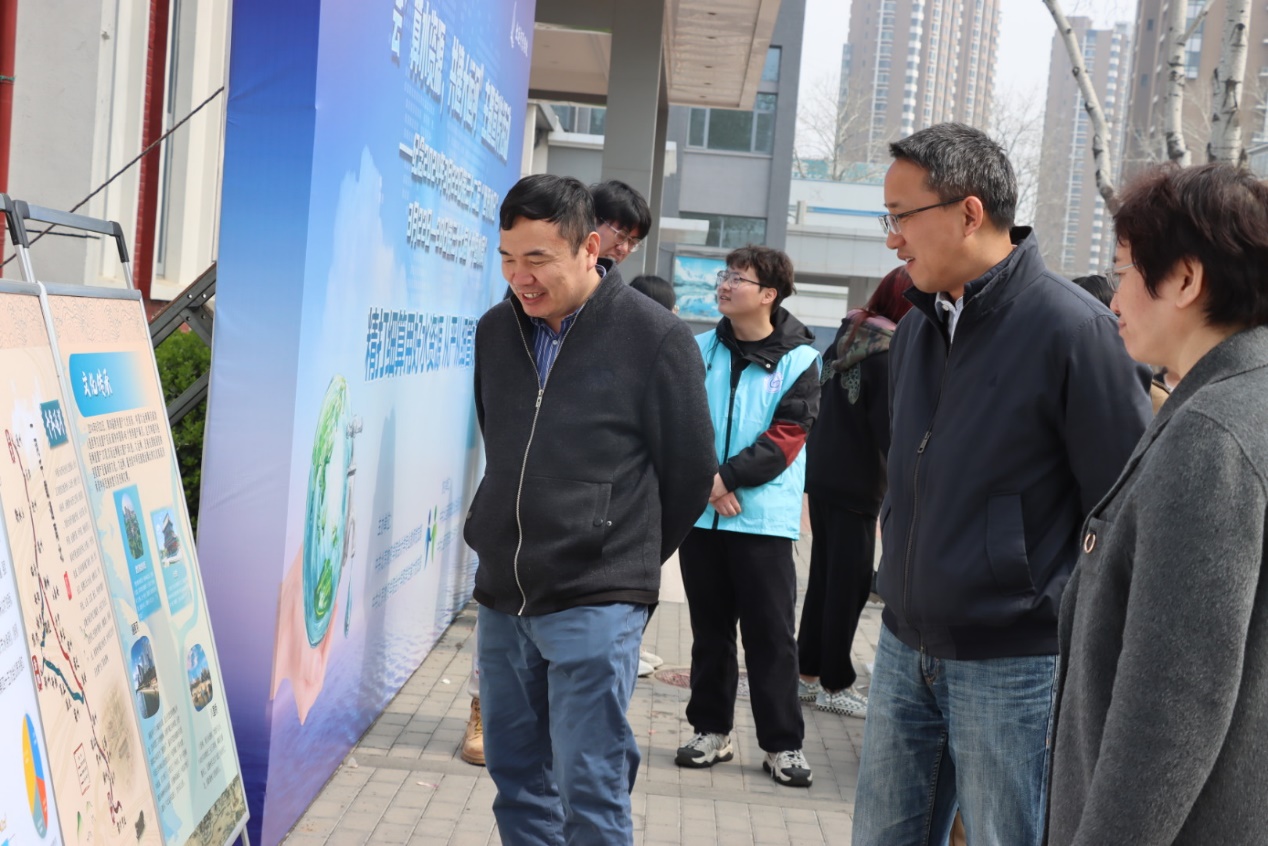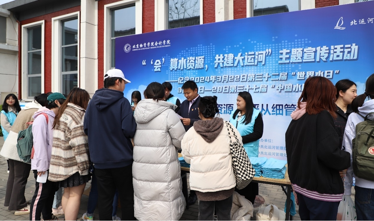 3月25日中午,师生党员志愿者在员工食堂南侧开展“‘会’算水资源,共建大运河”主题宣传活动。志愿者引导师生观看宣传展板,为大家讲解大运河历史和文化、北运河发展情况、北京水资源现状、水资源治理和节水文化等方面知识。