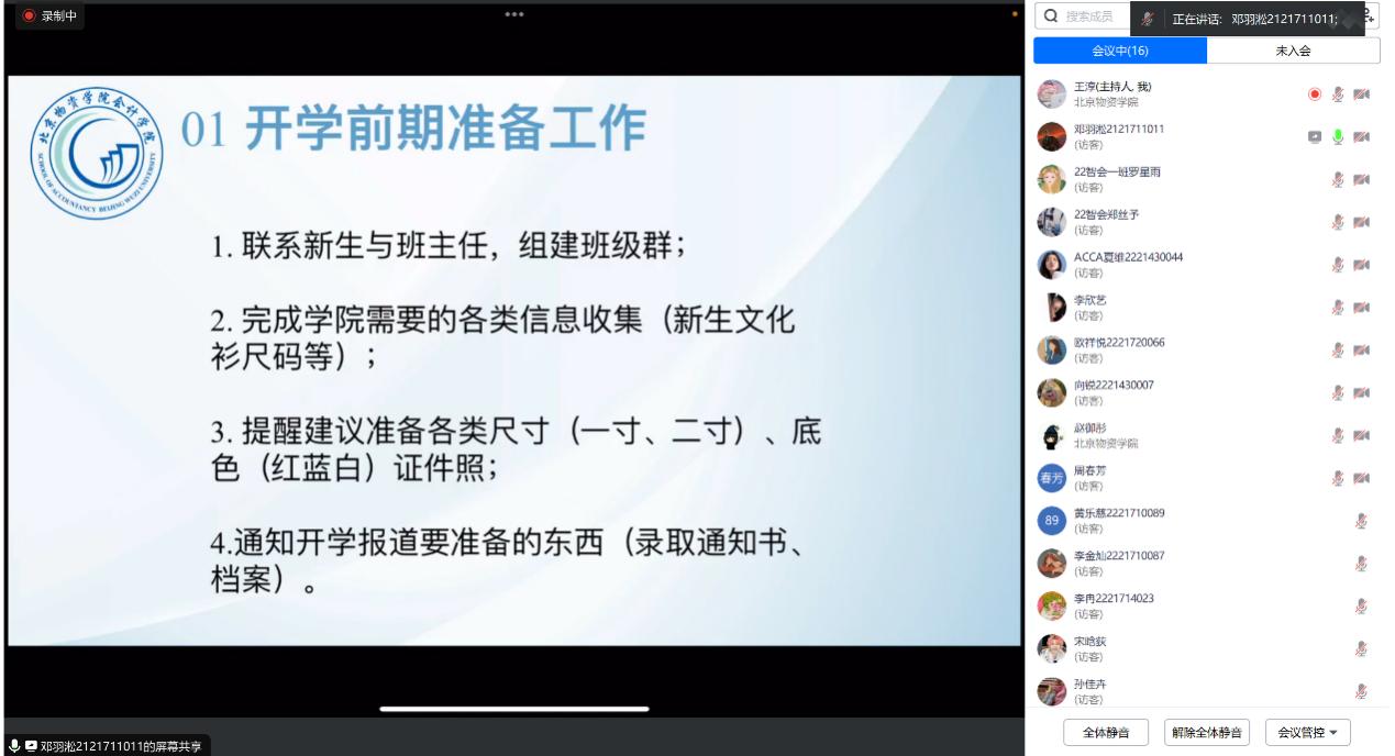 为了提高2024级本科新生班主任助理的专业素养和服务水平,旨在向新生提供更加全面、贴心的入学引导并帮助新生平稳过渡,充分融入老员工活,304am永利集团于8月24日在线上开展2024级本科新生班主任助理培训会。2024级横向负责辅导员赵御彤、2023级优秀班主任助理代表邓羽淞、李欣艺以及全体2024级新生班主任助理参加本次培训。