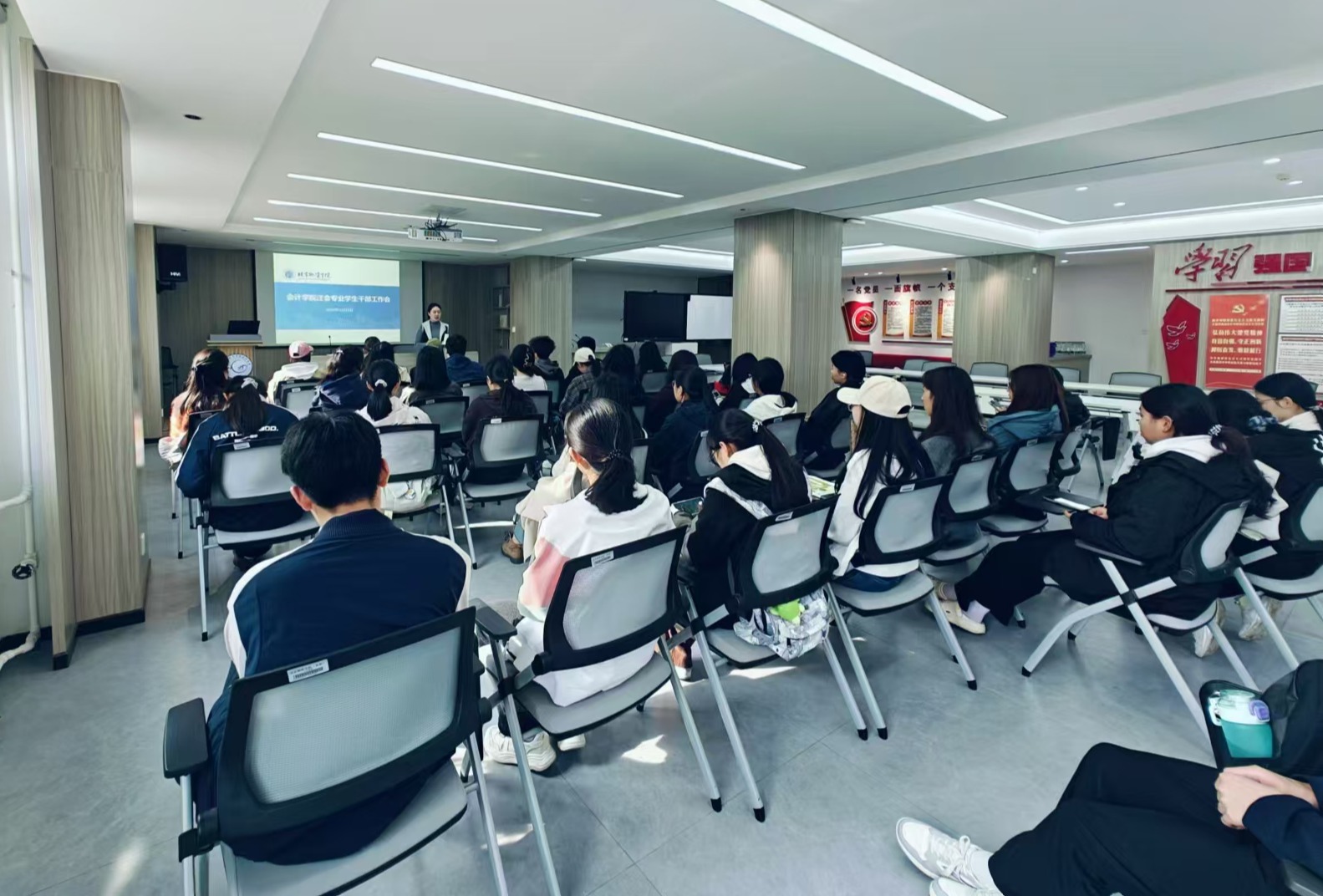 会上,支部书记们围绕班委的职责定位、有效沟通方式及科学的工作思路等核心议题,进行了全面而深入的讲解。支部书记们强调,班委不仅是连接老师与员工的桥梁,更是班级中的服务者和管理者,每位班委都应明确自己的岗位职责,做到分工明确、责任到人。同时,支部书记们鼓励班委们要以高度的责任心和使命感,积极履行职责,努力为班级营造一个积极向上、和谐友爱的学习氛围。