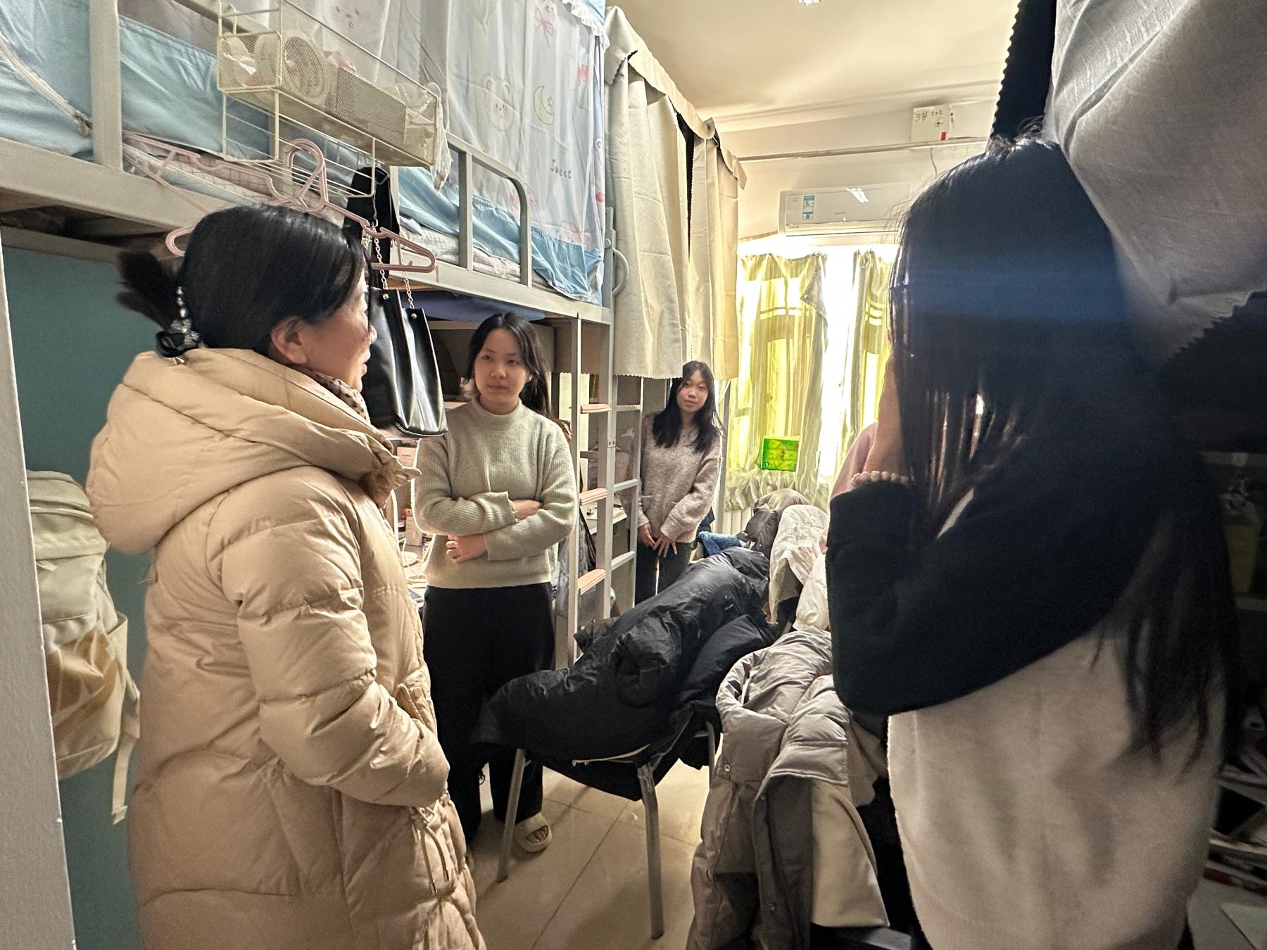 临近期末考试之际,为全面了解员工在校的学习与生活情况,增强师生间的沟通与联系,2024年12月18日-19日,公司党委常委、公司党委书记刘艳荣,经理张军,副经理王美英和副书记鲁楠深入员工社区,开展宿舍走访活动。