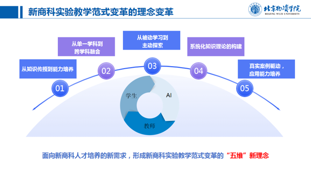 张闯教授的报告题为《AI驱动实验教学范式变革的突破点与实施路径》。张闯教授提出,人工智能是新一轮科技革命和产业变革的重要驱动力量,是推动科技跨越发展、产业优化升级和生产力整体跃升的关键力量,人工智能持续推动行业转型变革,使得企业对人才的技能结构需求将发生重大变化,为此,需要推动商科实验教学范式的变革,形成新商科实验教学范式变革的新理念。
