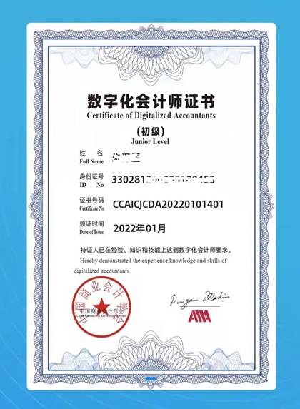 完成以上公益云课学习并通过考试的同学,可以获得《数字化会计师》电子证书,证书样例如下。