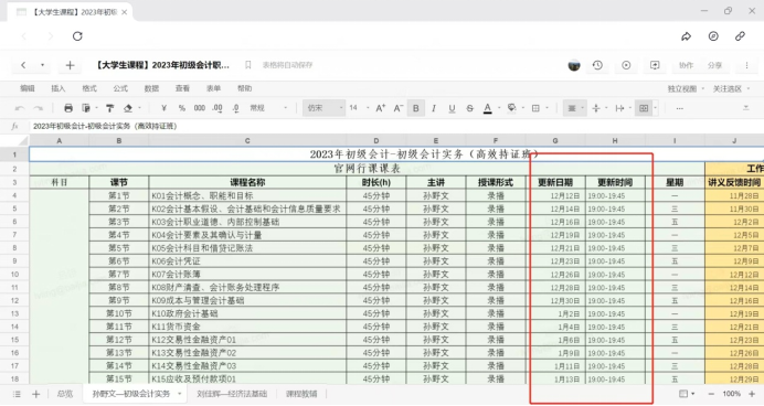 2023年春季学期304am永利集团继续联合高途教育集团为本校员工开放2023初级会计备考高效持证班课程,包括《初级会计实务》与《经济法基础》两门课程,主要内容、学时、课程进度及更新安排如下3图所示。