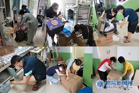 主题党日仪式后,全体党员和老师按照之前的安排和分工奔赴负责打包的宿舍开展工作。为保障整理物品更加精准,每个宿舍都采取现场一对一视频连线方式,在充分征求员工本人意见后,为员工收拾打包个人物品及行李。老师们都像对待自己的孩子一样,认真仔细地为每位毕业生收拾个人物品,将对毕业生的关爱和不舍融入每一个整理环节,用饱含师生情谊的实际行动体现学院的关心和关爱。