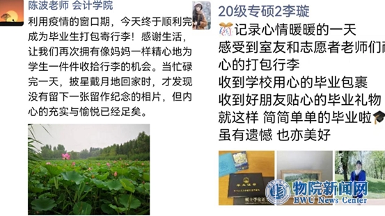 老师和同学们顶着酷暑,不怕辛苦,耐心整理,用周六和周日两天的时间完成为毕业生打包的任务,看着一箱箱行李摆放整齐,将被运送到全国各地的毕业生手中,参与打包的老师和同学们露出欣慰的笑容。本次整理打包,公司党员带头,全体教职工和返校毕业生积极参与,共有30名教职工、47名员工志愿者积极参与,和全体返校毕业生一起,共同完成了全体毕业生行李打包和邮寄工作。连线的同学们不断的说着“谢谢老师”、“辛苦老师”,老师们听着心里暖暖的,也都送出了一句句祝福:祝福同学们一切顺利、工作顺利、前程似锦、期待再相逢!