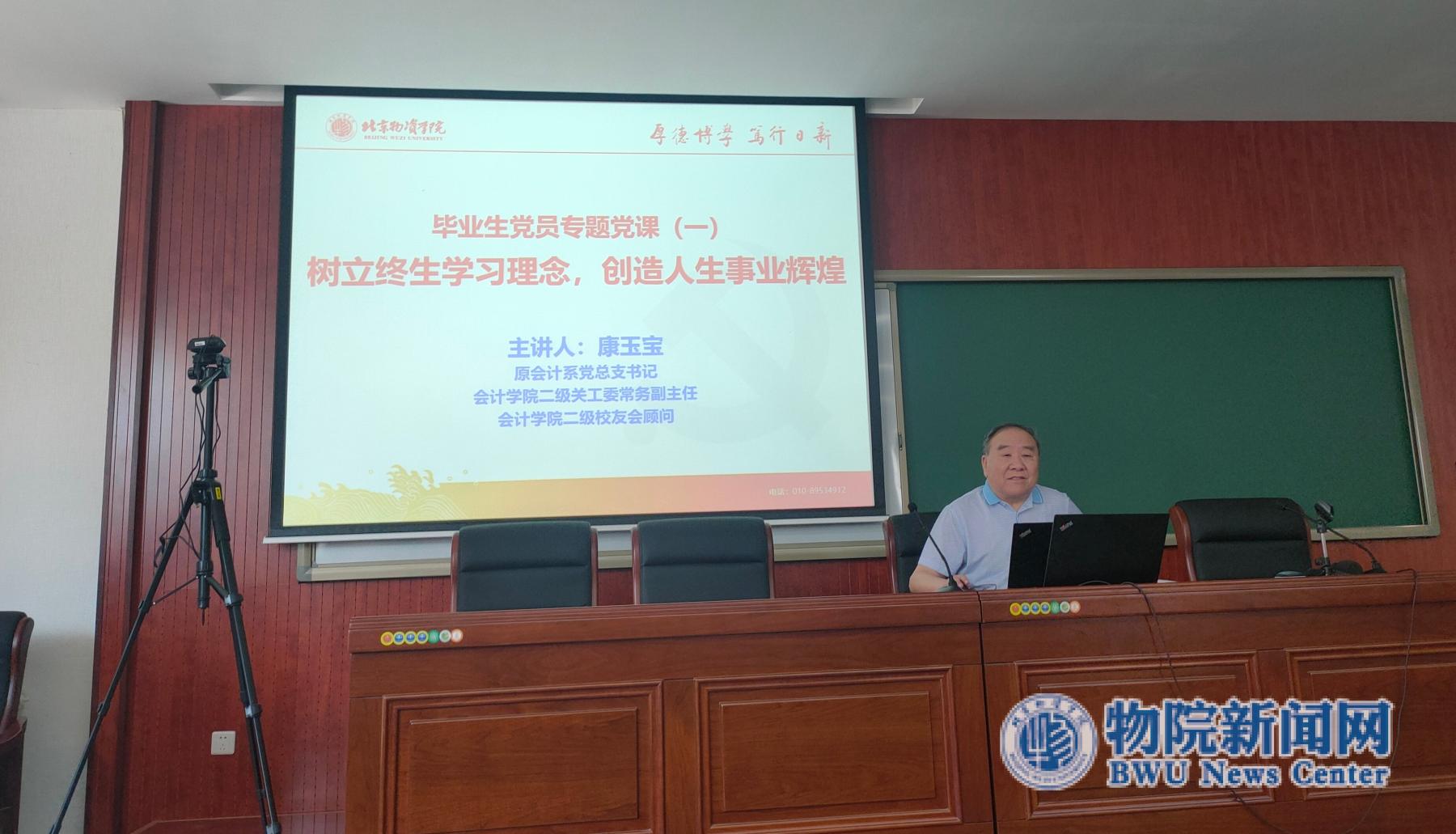 康玉宝老师以“树立终生学习理念,创造人生事业辉煌”为主题的讲授专题党课。康玉宝老师从树立终生学习理念的原因、方法和要求这三方面向党员们阐述树立终生学习理念的必要性和重要性,表达对毕业生党员走好人生道路的殷切期盼,激励毕业生党员在未来的学习和工作岗位中以永远在路上的执着和坚毅,在青春的赛道上奋力奔跑,创造人生事业的新辉煌。