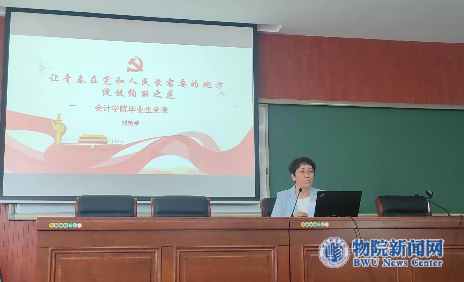 公司党委书记刘艳荣为毕业生上题为“让青春在党和人民最需要的地方绽放绚丽之花”的专题党课。刘艳荣书记从坚定理想信念、明确时代责任、提升综合素质和品质三方面,重点结合习近平总书记系列讲话精神对毕业生党员提出要求,同时也融入了对毕业生党员的廉洁从业教育,希望毕业生党员未来能不断坚定理想信念、提高党性修养、牢记使命担当、贡献青春力量,以实际行动为母校增光,把青春奉献在党和人民最需要的地方,做实现中华民族伟大复兴的先锋力量。