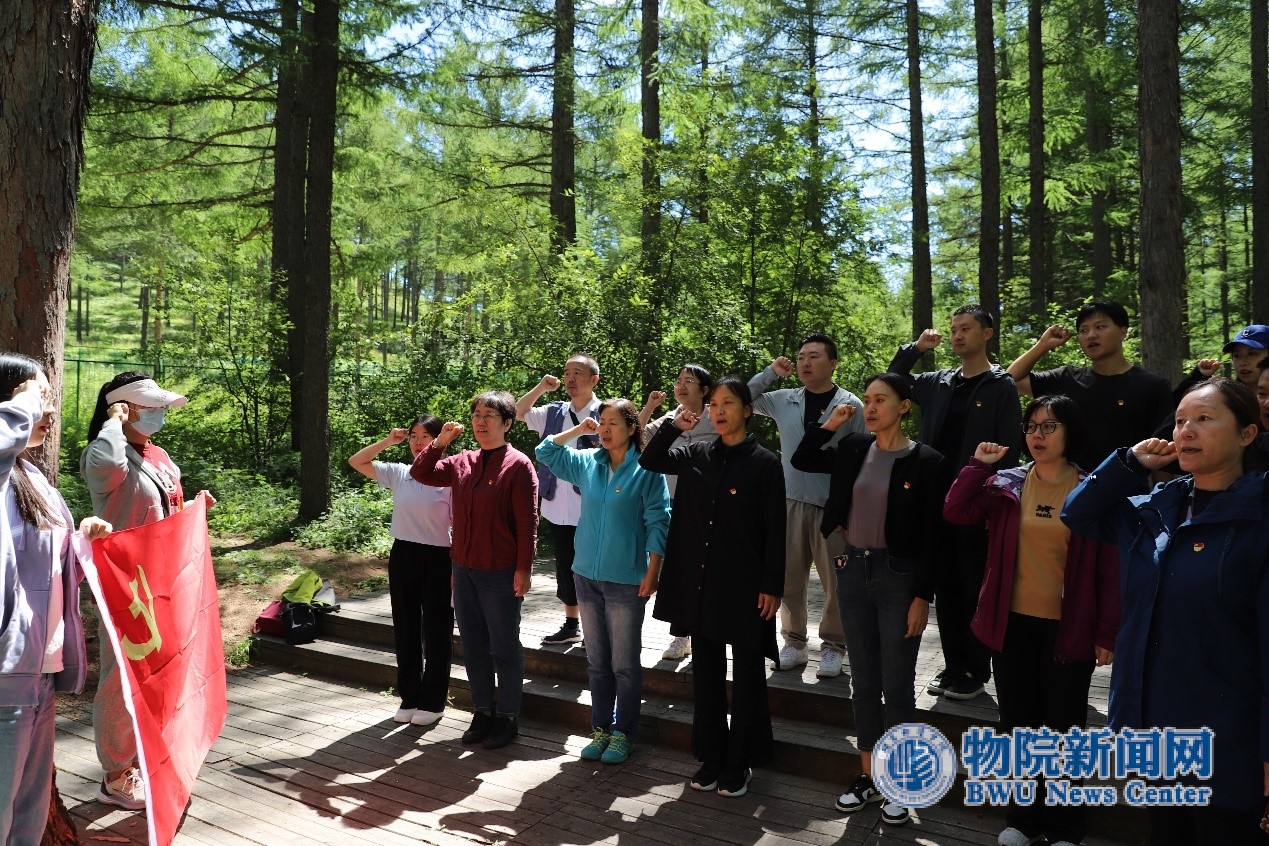 学习实践活动期间,师生先后来到月亮山望海楼和尚海纪念林调研学习。在海拔1900米的月亮山,大家参观了望海楼观测塔,再次感慨刘军、王娟夫妇14年如一日的坚守精神。走在过尚海纪念林的木栈道上,在郁郁葱葱的树林中,大家深刻体会到造林的不易以及塞罕坝生态环境的明显改善。尚海纪念林是为了纪念塞罕坝机械林场第一任党委书记王尚海的一片松林,是塞罕坝万顷林海的精华,也是塞罕坝精神的结晶。在王尚海书记的纪念碑前,由公司党委副书记吴忠华带领全体党员同志重温入党誓词,嘹亮的誓言回荡在那片绿意盎然的松林上空,传达着师生们对以王尚海书记为代表的老一代护林人的敬仰与钦佩之情。