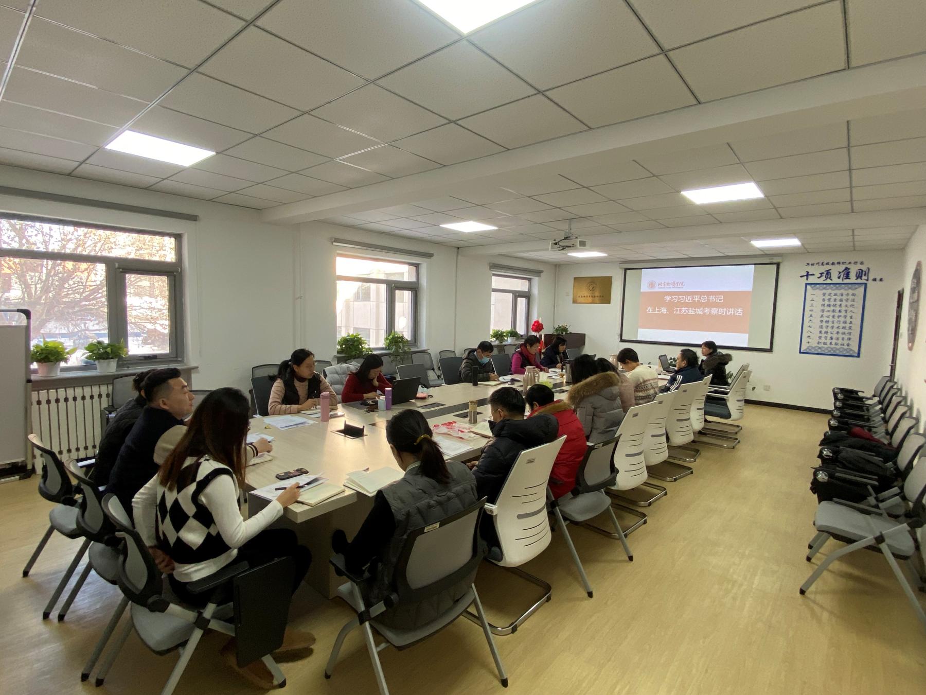 会议第一阶段为集体理论学习,公司党委纪检委员许海晏领学习近平总书记在上海、江苏盐城考察时的重要讲话精神。许老师详细解读了习近平总书记对上海聚焦建设国际经济中心、金融中心、贸易中心、航运中心、科技创新中心的重要使命的指示,结合学院专业发展谈了自己的体会。