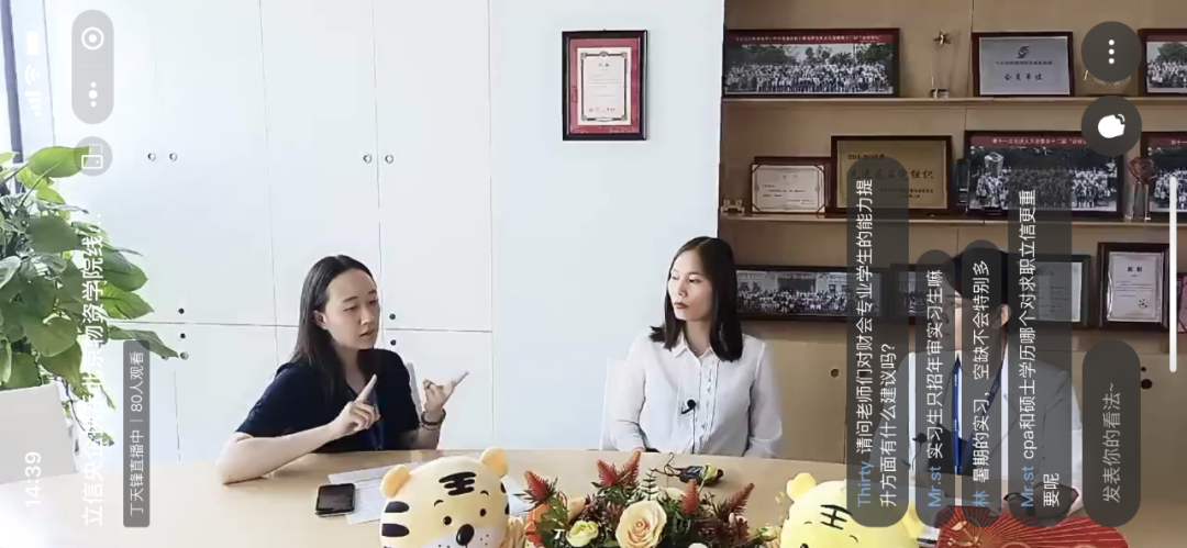 活动的后期主持人与直播间的员工进行互动,员工们很关注实习的问题以及后期留用的流程,HR耐心的为大家进行讲解并且为大家送上CPA考试的小技巧,希望对即将考CPA的同学有所帮助。