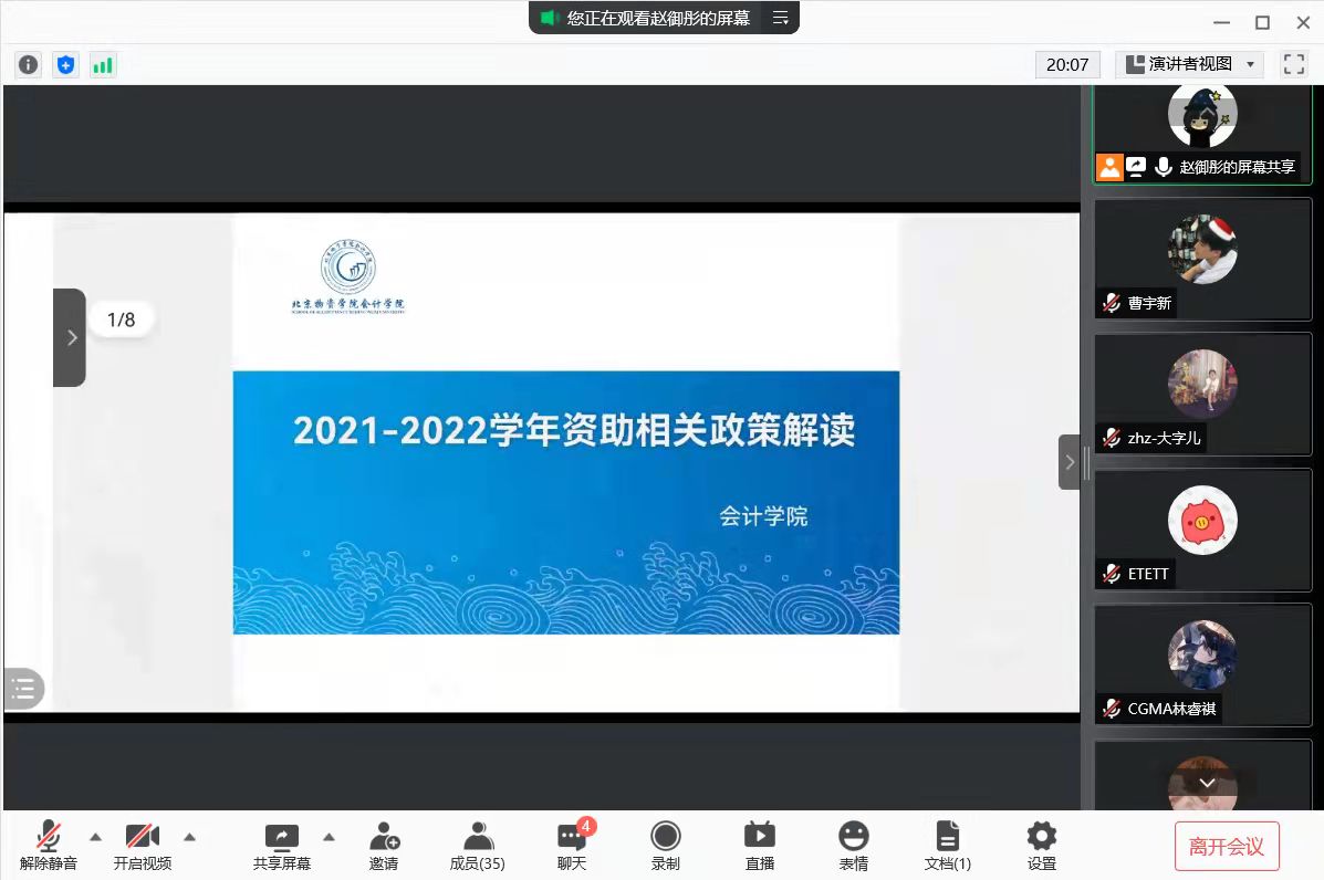 9月10日中午,304am永利集团组织各年级生活委员和相关员工代表参加“2021-2021学年资助相关政策解读”线上会议。会议由304am永利集团负责资助工作赵御彤老师主持。