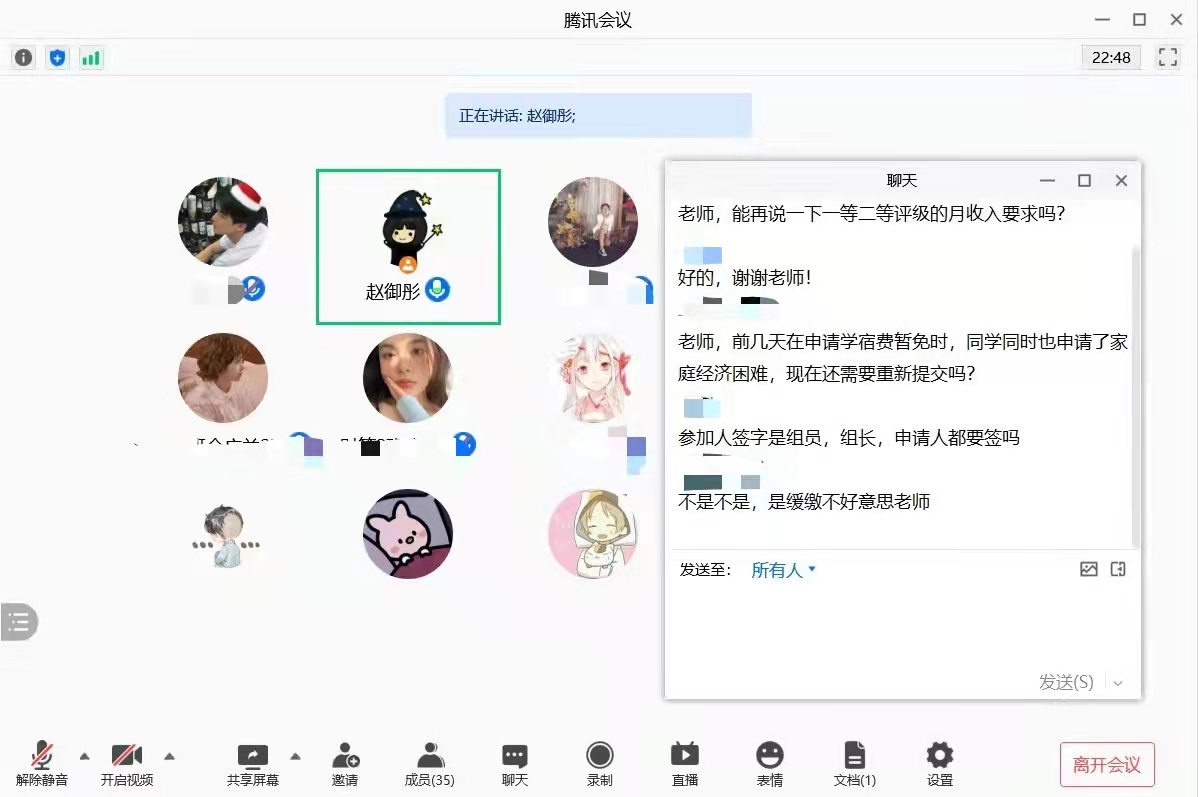 会议最后是答疑环节,赵老师解答同学们提出的问题,以便于各班更好的开展助学金评定工作和资助工作。